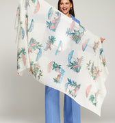 This lightweight scarf features a whimsical guepardo (cheetah) motif illustrated in relaxed Riviera scenes—lounging cheetahs, parasols, and palms—bringing charm and personality to any look. Crafted in an airy, fluid fabrication, it drapes beautifully whether worn around the neck, over the shoulders, or tied to a handbag.