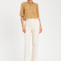 The Colette Blouse is crafted in delicate lace with an elegant floral motif, offering a refined balance of femininity and structure. Designed with a softly cropped silhouette, short sleeves, and classic button-front styling, this piece feels timeless yet modern. Beautiful worn on its own or styled as part of a layered look, it brings effortless romance to both day and evening dressing.