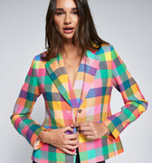 A joyful take on classic tailoring. This vibrant plaid blazer adds instant polish and personality, with a flattering structured silhouette that elevates both casual and dressed-up looks. A standout piece that feels fresh, confident, and effortlessly chic.