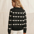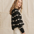The Heart Crew is crafted from a warm blend of wool and nylon. This heart motif sweater is reminiscent of vintage hankies and features a pullover crewneck style and a boxy fit hem. The delicate ribbing lends texture to the neckline, hem and cuffs.