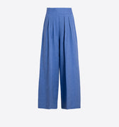 A breezy wide-leg pant with soft pleating and a flattering high waist, designed to move beautifully with every step. Effortless and refined, it’s the ultimate warm-weather staple with an easy, feminine drape.