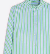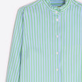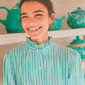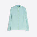 A crisp striped button-down with a softly ruffled collar and relaxed, feminine fit. Light and effortless, it brings a fresh, polished ease to everyday dressing.