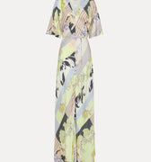 A dream in motion. This flowing wrap dress features the signature Sacred Garden print cut in a soft silhouette with wide sleeves and a gathered waist. A wearable work of art.