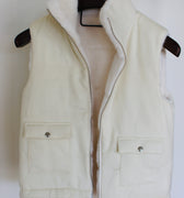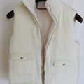 A reversible vest designed for effortless versatility, finished in a soft ivory tone with plush shearling lining. Worn smooth or cozy-side out, it features a clean zip front and subtle pocket detailing—an elevated layering piece that feels both polished and relaxed.