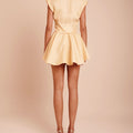 The Amanda Top brings a refined statement to warm-weather dressing with its luminous yellow finish and artfully twisted front detail. Designed with a structured collar and elegant cap sleeves, this cropped silhouette balances tailored polish with modern femininity. The lightweight fabric offers an elevated feel, making it ideal for sunlit events, vacation styling, or chic daytime occasions. Wear it with the coordinating skirt and metallic heels for a striking set, or pair it with high-waisted trousers for a sophisticated contemporary look.