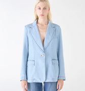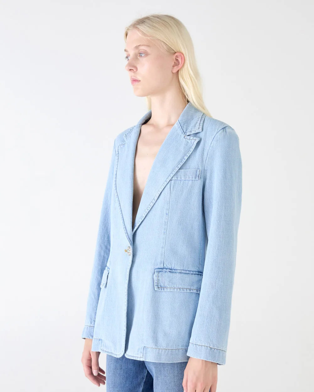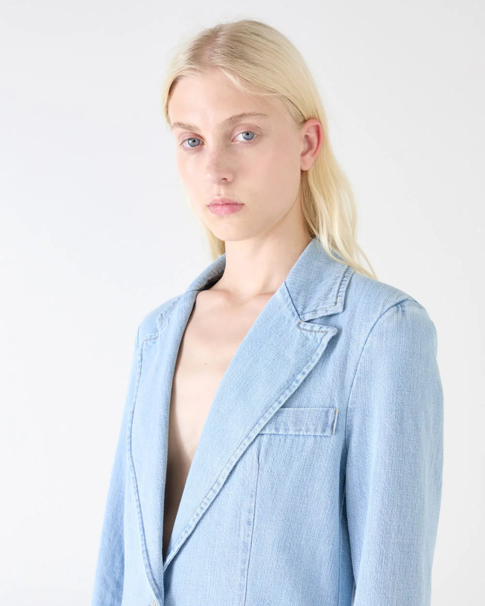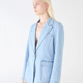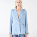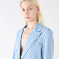 Single-breasted blazer with a center button and front flap pockets, in Japanese denim. Made in Italy for a bold, soft, and refined style.