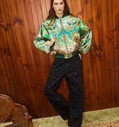 Vibrant silk in jewel-toned paisley, this Alamais bomber is a true statement layer — bold, luxe, and undeniably Saujette.