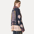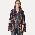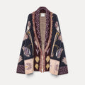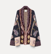 A masterpiece of texture and artistry, this longline cardigan envelops the body in a cocoon of soft baby alpaca and wool. Intricately woven floral and geometric motifs blend rich tones with subtle contrast, while the hand-finished fringed collar adds a touch of bohemian elegance. A statement piece that feels as sumptuous as it looks.