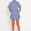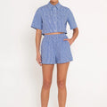 The Biarritz Top is made from a lightweight, airy striped fabric and features delicate rhinestone embellishments that shimmer with every movement. The modern cropped silhouette and refined detailing create a sophisticated yet effortless piece, perfect for adding a touch of sparkle to your high-waisted ensembles.